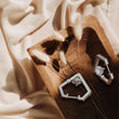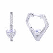 14K White Gold Dipped Hypoallergenic Brass Diamond Shaped Huggie Hoop Earrings Featuring Cubic Zirconia Pave Detailing and Cubic Zirconia Set Stone. 2.01 cm / .80 inches.