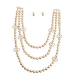 Lux 3 Strand Gold Metal Ball Pearl Necklace Set Featuring Clear Rhinestone Station Infinity Link Details. Layers measures 18" to 28".