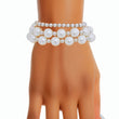 3 Pcs Stretch Bracelet Set Featuring White Pearls and Silver Metal Ball Beads.