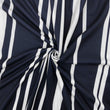 3XL Plus Size Navy and White Stripe Print Crew Neck Long Sleeve Crop Top and Matching Skirt Outfit Set. Top Features Adjustable Tie Front Detail and Skirt Has Pockets. Poly/Spandex Blend.