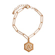Gold Metal Paperclip Link Chain Bracelet Featuring Textured Hexagon A Initial Charm. Charm measures .75 inches