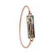 Burnished Gold Metal Hook Closure Bangle Bracelet Featuring Abalone Cross Detail. Detail measures 1.5 inches long