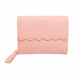 Women's Accordion Wallet Soft Grain Pink Vegan Faux Leather Cardholder Wallet Featuring Scallop Edge with Flap and Snap Front Closure. Wallet Features Zipper Accordion Cardholder Section and Snap Bi-Fold with Card Slots and ID window.