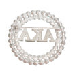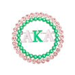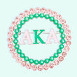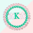Women's Brooch Pin Featuring Round Circle Design with Silver Metal, Green Pearl Studs, Pink Rhinestone Edge, and AKA Alpha Kappa Alpha Detail. Safety Pin C Clasp Closure.
