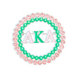 Women's Brooch Pin Featuring Round Circle Design with Silver Metal, Green Pearl Studs, Pink Rhinestone Edge, and AKA Alpha Kappa Alpha Detail. Safety Pin C Clasp Closure.