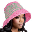 AKA Bucket Hat Pink Green Multi Stripe Straw
