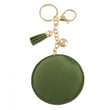 Gold Metal Keychain Ring and Handbag Charm Clip Featuring Tassel plus Pink and Green Rhinestone Padded Circle with Sorority Inspired Greek Letter Detailing. Padded Circle measures 3.10".