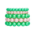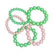 Women's Pearl Bracelet Set. Alpha Kappa Alpha Sorority Pink and Green Acrylic Pearl Stretch Bracelet Set. Includes 5 Pcs. (2) 10mm strands and (3) 14mm strands.