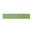 Alpha Kappa Alpha Sorority Paraphernalia Women's Magnetic Bracelet. Thick Green Felt Canvas Bracelet Featuring 16 Rows of Green Rhinestones with Pink Rhinestone AKA Greek Letter Detail. Silver Metal Magnetic Closure.