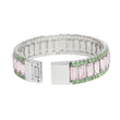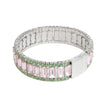 Alpha Kappa Alpha Sorority Paraphernalia Women's Tennis Bracelet. Silver Metal with Pink Baguette Crystals and Green Rhinestones Elegant Bling Tennis Bracelet. Bracelet Features Magnetic Push Closure. Bracelet Measures .7" Wide.