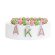 Alpha Kappa Alpha Sorority Paraphernalia Women's Bead Bracelet. Stretch Bracelet with Pink and Green Clay Beads Encrusted with Rhinestones Featuring Silver Metal with Pink and Green Rhinestone AKA Letter Charms. Letter Charms measures approximately .65"each.