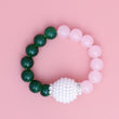 Alpha Kappa Alpha Sorority Paraphernalia Women's Beaded Bracelet. Half Pink and Half Green Glass Ball Bead Stretch Bracelet Featuring Pearl Studded Ball with Clear Rhinestone and Silver Spacers on Each Side. Pearl Ball Detail Measures 1.15".