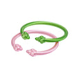 Alpha Kappa Alpha Sorority Paraphernalia Women's Cable Bangle Bracelets. 2 Pcs Bracelet Set. Metallic Pink and Green Epoxy Coated Metal Classic Cable Bangle Bracelets Featuring Elegant Pointed End Cap Detailing. End Cap Measures .65".