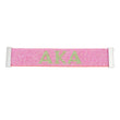 Alpha Kappa Alpha Sorority Paraphernalia Women's Magnetic Bracelet. Thick Pink Felt Canvas Bracelet Featuring 16 Rows of Pink Rhinestones with Green Rhinestone AKA Greek Letter Detail. Silver Metal Magnetic Closure.