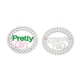 Alpha Kappa Alpha Sorority Paraphernalia Women's Brooch Pin. Silver Metal Round Brooch Featuring White Pearl Studs with Pink and Green Epoxy Pretty Girl Center Detail. Safety Pin C Closure.