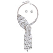 Women's Asymmetric Necklace Set. Silver Metal Curb Chain with 8 Strand White Acrylic Pearls and Rhinestones Asymmetric Knot Design Necklace with Pearl and Rhinestone Fringe Tassel Drop. Drop measures 7 inches long. Unique Elegant Design. Lobster Clasp Closure. Includes Matching Pearl Post Backing Stud Earrings.