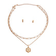 Gold Metal 2 Strand Paperclip Oval Link Chain Necklace Featuring Textured Hexagon B Initial Charm Pendant. Charm measures .75 inches
