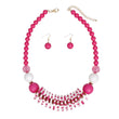 Beaded Funky Fuchsia and White Disc Necklace Set