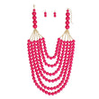 Beaded Long Layer 6 Strand Pink Chunky Necklace