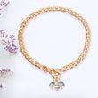 Gold Chain Toggle Necklace Featuring Blue and White Rhinestone Bee Charm. Bee measures 1.5 inches wide