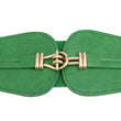Women's Wide Stretch Belt. ColorPop Bold Green Wide Vegan Faux Leather Structured Front Stretch Belt Featuring Stretchy Canvas Back Panel and Gold Metal Toggle Closure. Belt Measures 31.5" Long When Unstretched. Can Stretch to Approximately 42". Faux Leather Front Measures 3.25" x 12.35". Perfect for AKA Sorority.