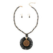 Black and Gold Bead Necklace Set Featuring Fan Tassel Pendant. Pendant measures 3.75 inches long