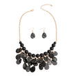 Gold Metal and Black Bead Necklace Set Featuring Layered Black and Silver Acrylic Teardrop and Rhinestone Details. Necklaces measures 2.75 inches long