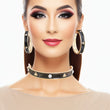 Gold Metal Casting and Black Epoxy Hoop Earrings Featuring Designer Bee and Rhinestone Detail. Hoops measure .35 inches wide