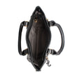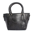 Black Vegan Leather Croc Textured Tote Handbag Set. Tote Features Front Zipper Details * Not Pockets. Main Zipper Closure. Includes Matching 7.5 x 5.25 inches double zipper pouch wristlet. Detachable Shoulder Strap Included.