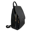 Soft Black Vegan Leather Convertible Backpack Handbag. Backpack Features Double Zipper Pocket Interior. Main Flap Over and Snap Closure. Rear Zipper Pocket. Adjustable Shoulder Straps. Can convert to Sling bag.
