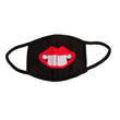 Black Fabric Face Mask Featuring Goofy Smiling Mouth Print. Reusable. Washable. Stretch Design