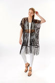Sheer Black Butterfly Embroidered Lace Beach Swimsuit Cover Up Featuring Fringe Detailing. Short Sleeves. One Size. 100% Polyester