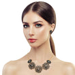 Gold Metal Cable Chain Necklace Set Featuring Black Matte Metal Cut Out Flower Collar with Rhinestone Center Detailing. Center Flower measures 1.5 inches.