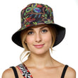 Black and Multi Color Paisley Print Bucket Hat Featuring Black Interior. Reversible. Can be worn both ways. 100% Polyester.