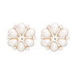 Women's Stud Earrings Small Gold Metal and Cream Pearl Teardrop Flower Studs Featuring Rhinestone Details. Post Backing.