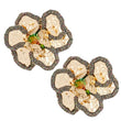 Women's Stud Earrings. Glamorous Garden-Chic Large Textured Gold Metal Dimensional Petal 3D Flower Stud Earrings Featuring Multi Color Rhinestone Encrusted Edging and Mixed Pink Green Crystal Rhinestone Center. Earrings Measure 1.25" Tall. Post Backing.