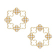 Women's Stud Earrings. Graceful Gold Metal Cut Out Clover Wreath Shaped Earrings Featuring Acrylic Cream Pearl Stud Detailing. Post Backing.