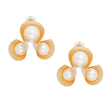 Women's Stud Earrings. Elegant and Modern Gold Metal Triple Loop Ruffle Design Stud Earrings Featuring Acrylic Cream Pearl Details. Post Backing.