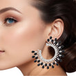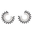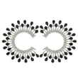 Women's Stud Earrings Silver Metal C Shaped Elegant Earrings Featuring Black Teardrop Crystals and Clear Rhinestones arranged in Crown Like Pattern. Post Backing.