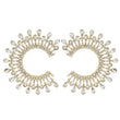 Women's Stud Earrings Gold Metal C Shaped Elegant Earrings Featuring Clear Teardrop Crystals and Rhinestones arranged in Crown Like Pattern. Post Backing.