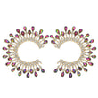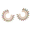 Women's Stud Earrings Gold Metal C Shaped Elegant Earrings Featuring Pink and Green Teardrop Crystals with Clear Rhinestones arranged in Crown Like Pattern. Post Backing.