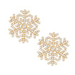 Women's Stud Earrings. Winter Gold Metal Radiating Dendrites Shaped Snowflake Studs Featuring Xmas Shine Clear Rhinestone Detailing. Post Backing.