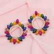 Women's Stud Earrings. Glistening Formal Crystal Wreath Shaped Stud Earrings Featuring Multicolor Marquise Crystals and Clear Rhinestone Ring Detail. Post Backing.