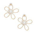 Women's Stud Earrings. Handmade Gold Metal Looped Wire Flower Shaped Earrings Embellished with Acrylic Cream Pearl Center Detailing. Post Backing.