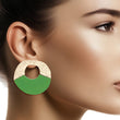 Studs Medium Gold Green Wood Circle Earrings Women