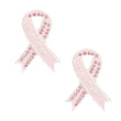 Women's Stud Earrings. Silver Metal with Light Pink Epoxy and Pink Rhinestones Breast Cancer Ribbon Shaped Studs Featuring Believe Detail. Post Backing.