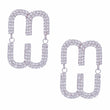 Women's Stud Earrings. Silver Metal with Clear Pave Rhinestones Double Oval Loop Shaped Studs. Post Backing.
