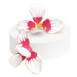 Women's Stud Earrings. Naturally Shaped Gold Metal with White and Dark Pink Enamel Shiny Tropical Flower Petal 3D Earrings. Artistic & Sculptural Design. Earrings Measure 1.35" tall. Post Backing.