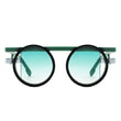 Women's Round Sunglasses. Irregular Futuristic Round Green with White Plastic Double Frame Sunglasses Featuring Square Gradient Color Tint PC Lens. UV 400. 100% UVA & UVB Protection. Frame Width: 144mm. Lens Width: 42mm. Lens Height: 42mm. Bridge Width: 20mm. Temple Length: 140mm.