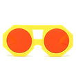 Women's Round Fashion Sunglasses. Chunky Geometric Oversized Yellow Plastic Frame Sunglasses Featuring Cut Out Bridge Design and Outlined Frame Detail. Orange Color Tint PC Lens. UV 400. 100% UVA & UVB Protection. Frame Width: 146mm. Lens Width: 52mm. Lens Height: 52mm. Bridge Width: 24mm. Temple Length: 138mm.